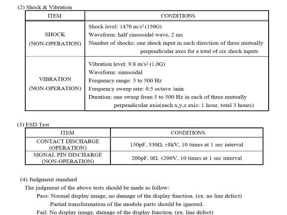 附上實驗指標(biāo)(此指標(biāo)為三菱液晶屏實驗標(biāo)準(zhǔn)):